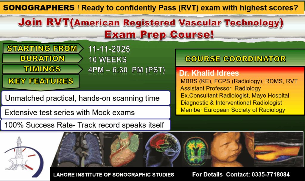 Dear Sonographers, Elevate Your Career: Join Our 8th RVT Exam Prep Course! Ready to confidently pass your Registered Vascular Technology (RVT) exam and achieve the highest scores? Don’t miss your chance to enroll in our highly successful 8th RVT Exam Preparatory Course, starting November 11, 2025!We don’t just help you pass—we help you excel. Our track record speaks for itself: Every student from our previous cohorts not only passed the RVT exam but achieved an average score of over 92%!